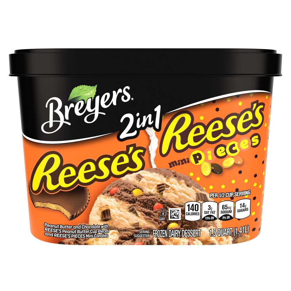 BREYERS IN REESES PEANUT BUTTER CUPS REESES PIECES . QUART