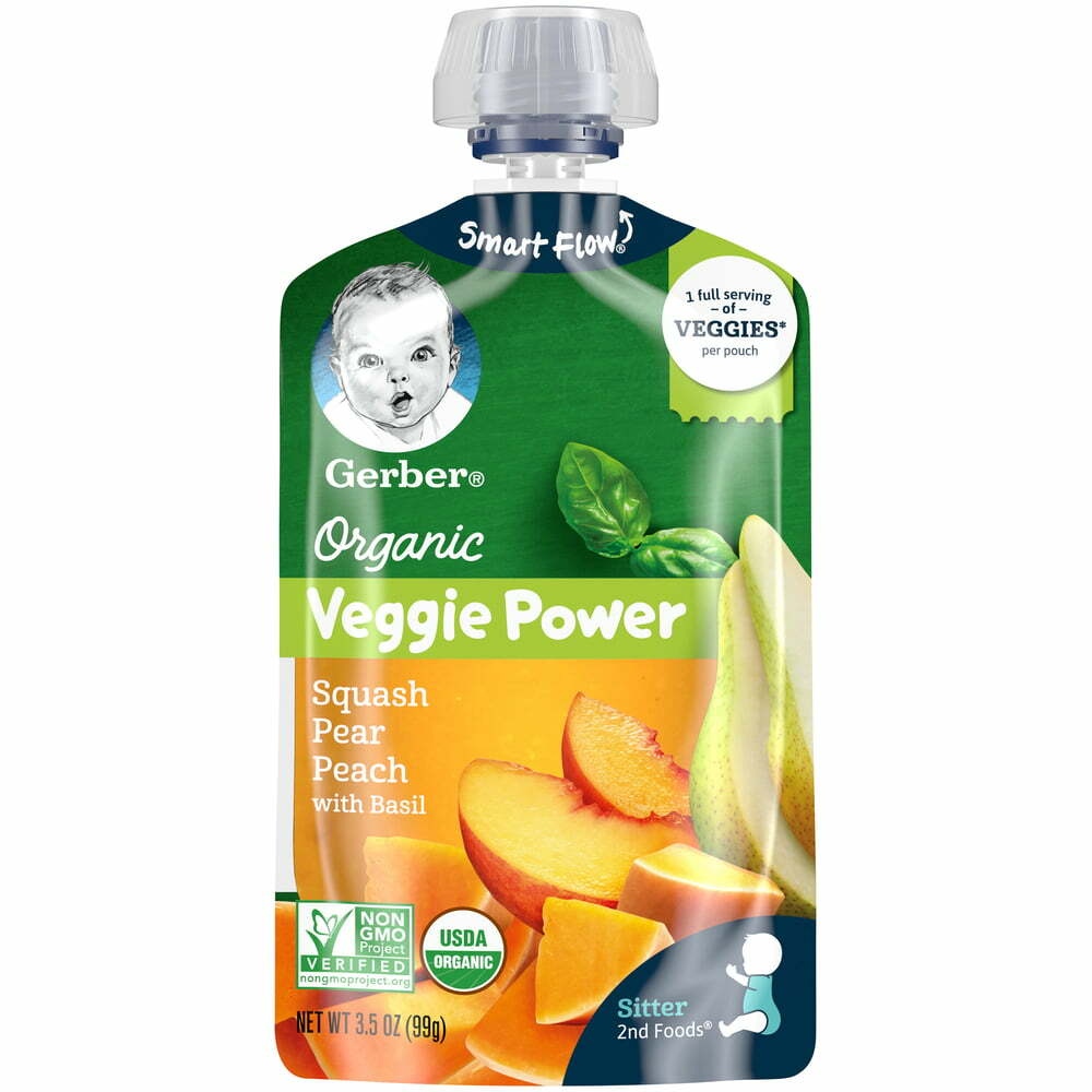 GERBER ORGANIC VEGGIE POWER SQUASH PEAR PEACH WITH BASIL 2ND