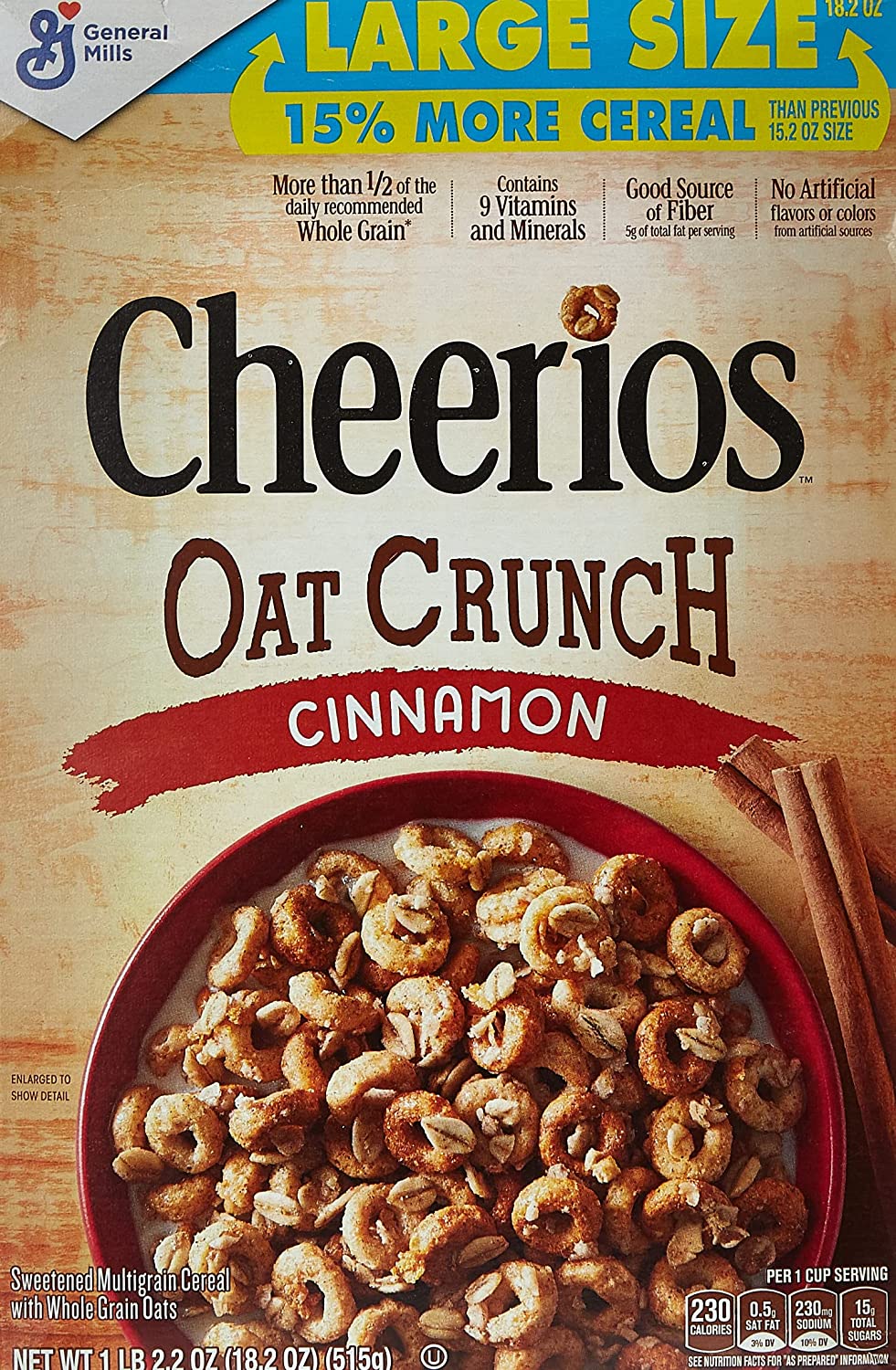 GMI OAT CRUNCH CHEERIOS CINNAMON CEREAL LARGE