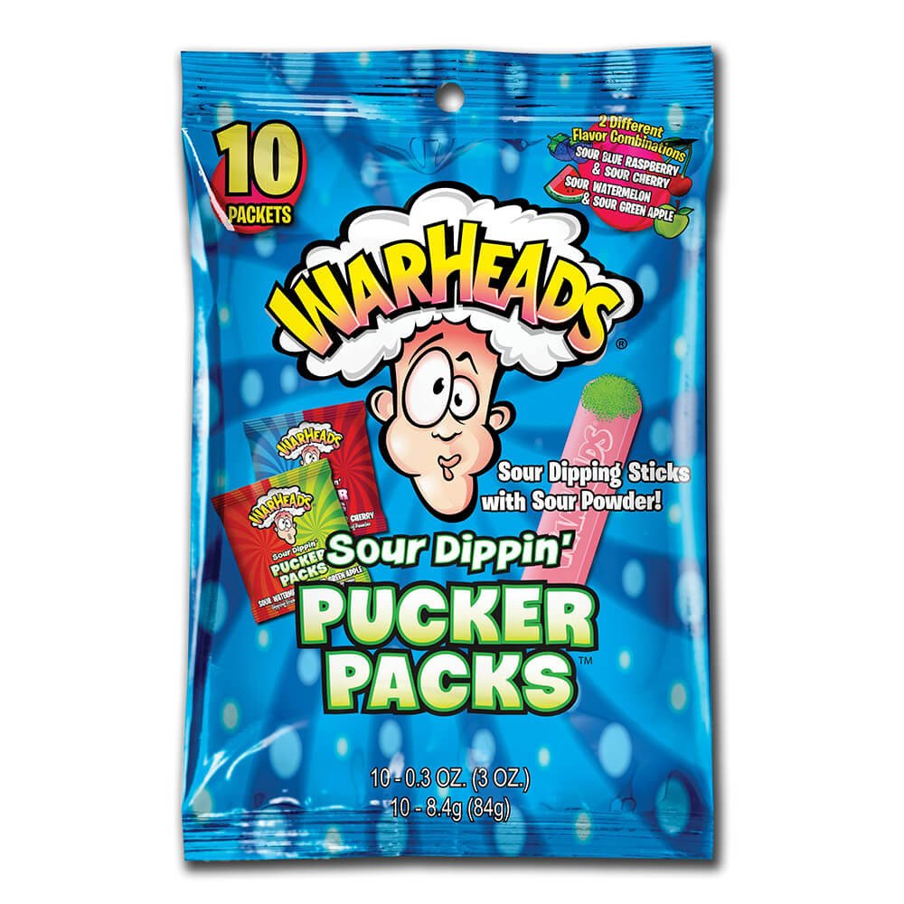 ● WARHEADS SOUR DIPPIN’ PUCKER PACKS (12 X 10CT) 10 PK 3OZ(84GMS) PER BAG